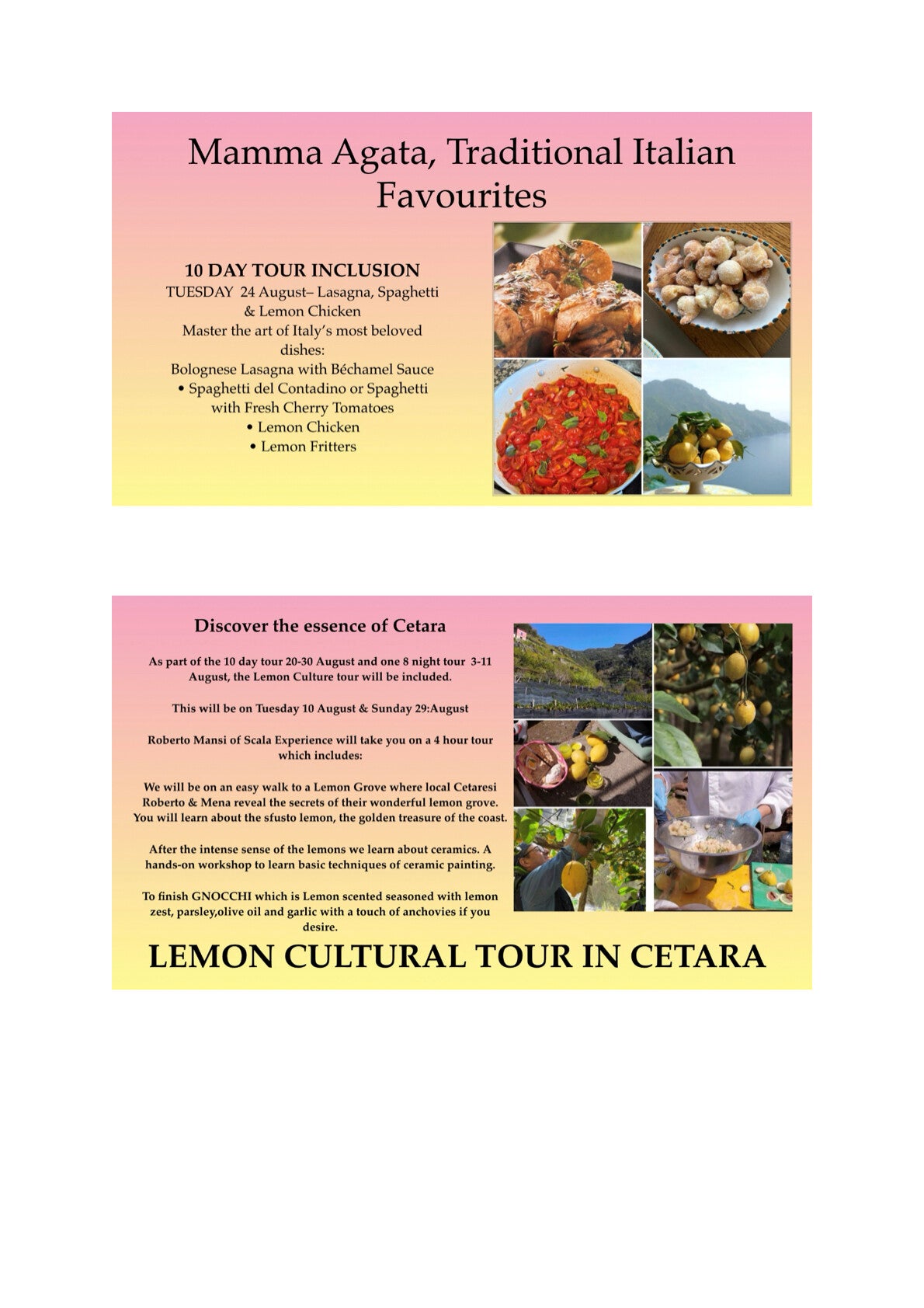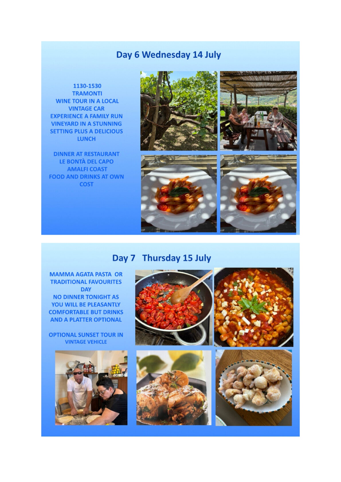 Added to the culinary and sightseeing tour are two extra days with a cooking school day and sightseeing day