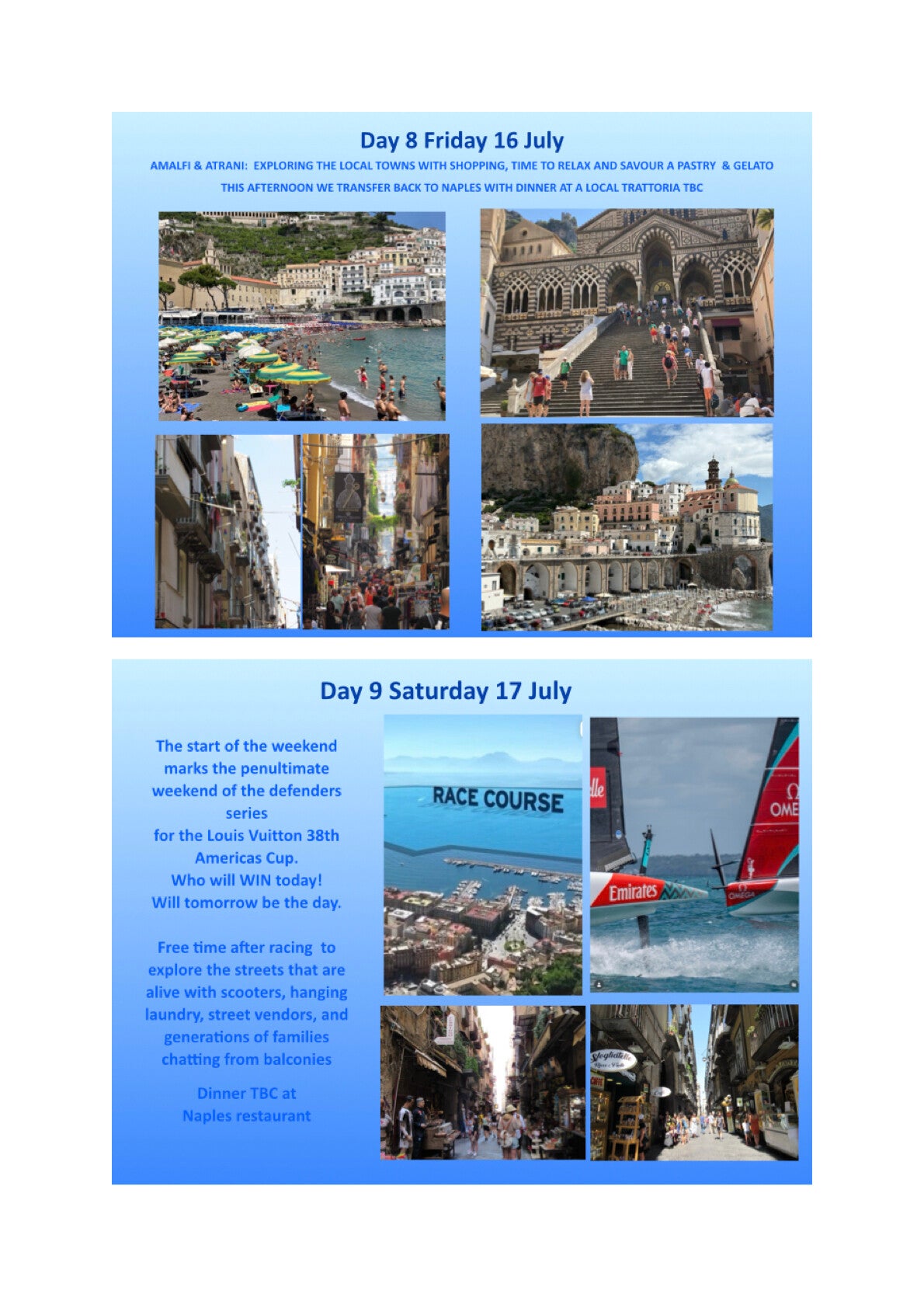 Spend three glorious days at the Americas Cup together with magnificent cuisine in Naples and Ravello.