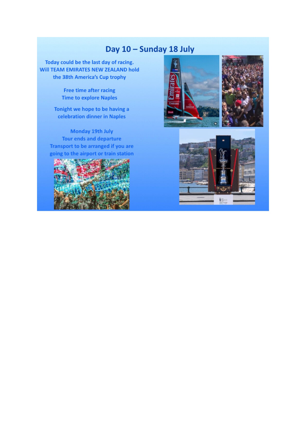 For 2027 I am delighted to announce the 10 night luxury curated tour Sailing, Savour, Win America’s cup (Sailing & Excellence in Cuisine)